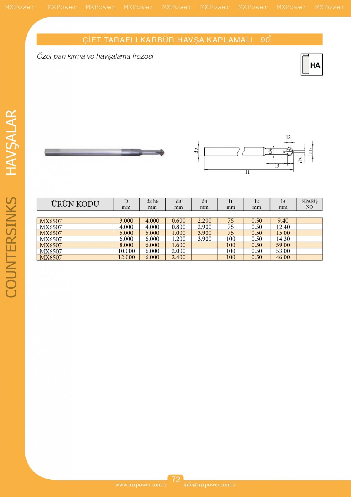 Dalma Boylu Köşe Radius Kaplamalı Freze