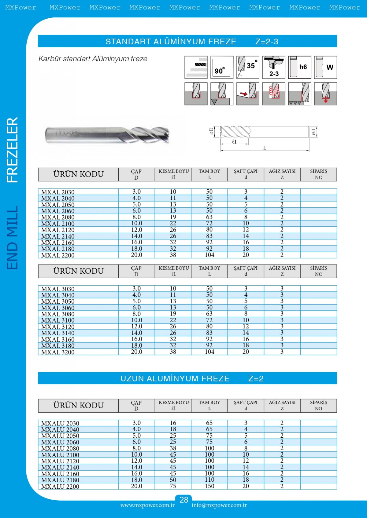 - Uzun ve Yüksek Performans Alüminyum Freze